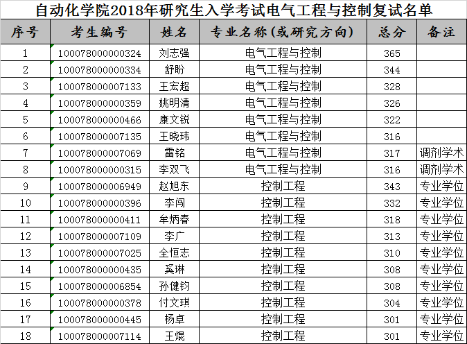 太阳成集团tyc122ccvip2018年研究生入学考试复试名单