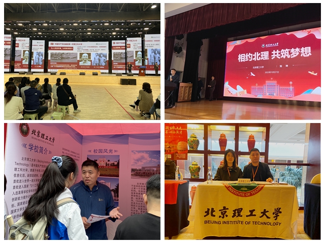 10月20日-22日,刘坤老师、刘杰老师先后赴成都外国语学校、成都新世纪光华学校、成都铁路中学、成都棠湖外国语学校进行巡展咨询,并做招生政策宣讲,累计超过1500名考生和家长来到北京理工大学展位进行咨询。