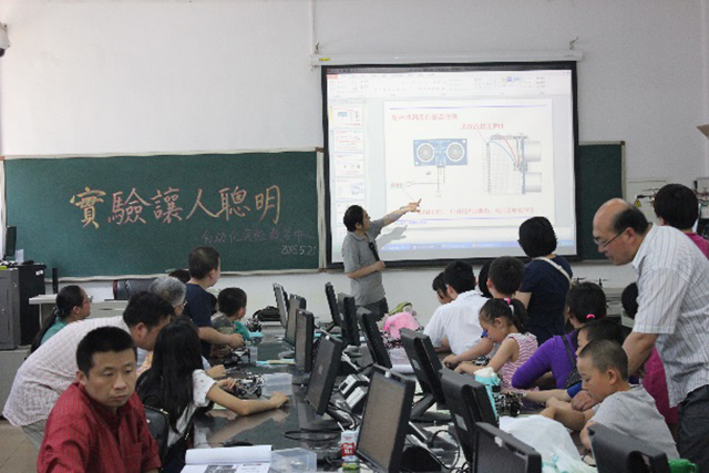 接下来,同学和家长参观了自动化实验教学中心各个实验室,实验中心党支部教工党员和研究生助管员们热情地讲解,孩子们不断提出各种妙趣横生的问题,家长教师们则用通俗易懂的讲解方式为孩子们答疑解惑。