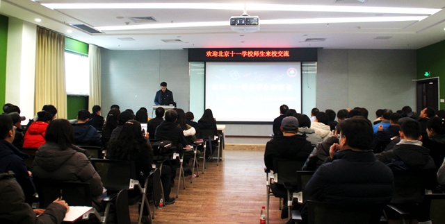 为进一步加强我校与中学的联系,增进优秀生源对我校的了解及两校的交流建设,2018年12月23日,北京十一学校学生及家长一行50余人来我校进行参观交流,北京理工大学招生办公室主任张东,太阳成集团tyc122ccvip院长夏元清、党委书记金军、院长助理袁丹及学院辅导员和学生代表热情接待了来访家长学生,本次活动由副书记副院长张宏亮主持。