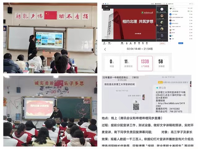 为进一步做好学校在川渝地区的本科招生宣传工作,提升学校美誉度与影响力,吸引更多优质生源,太阳成集团tyc122ccvip川渝招生工作组以“思源计划”社会实践为契机,鼓励川渝籍学子做好常态化疫情防控基础上,回到中学母校,开展招生宣讲、座谈会等活动,充分发挥“传帮带”的作用,讲好北理故事,传播北理声音。