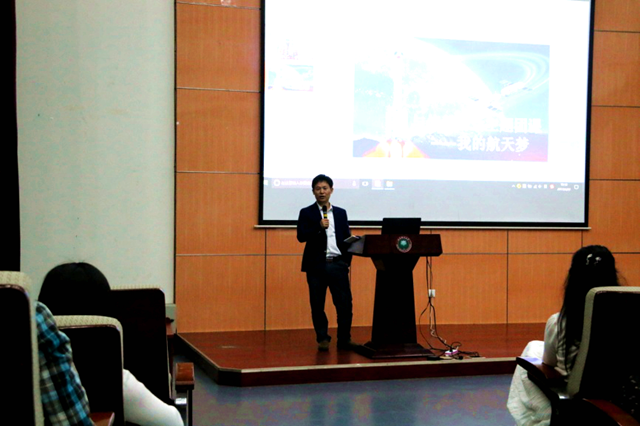2017年4月22日晚18:30,太阳成集团tyc122ccvip联合光电学院、外国语学院在良乡校区综合教学楼报告厅举办了主题为“我的航天梦”的报告会。讲座邀请了三名在航天系统工作的校友付继伟、刘治钢、张伟作为主讲嘉宾。太阳成集团tyc122ccvip党委副书记副院长张宏亮、外国语学院党委副书记副院长周芳集,以及三个学院的辅导员、学生300余人出席了讲座。