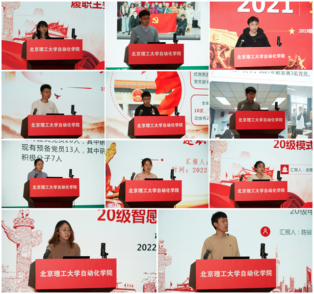 11位学生党支部书记就2021年党支部建设情况、开展思想政治工作、履职尽责情况及未来规划进行述职汇报。
