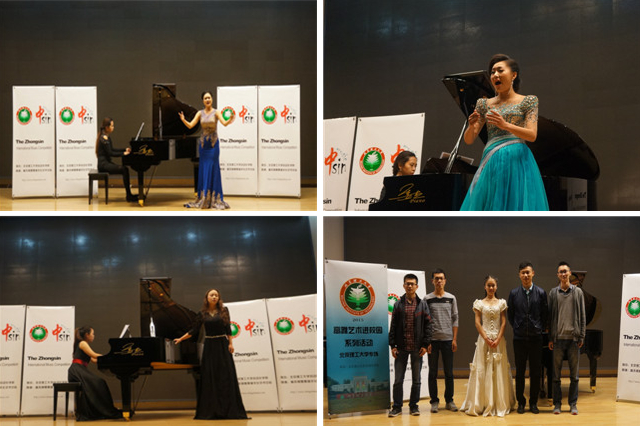 太阳成集团tyc122ccvip首届“高雅艺术进校园”音乐会于2016年1月10日下午在中关村校区7号楼报告厅举行,来自中国音乐学院声乐系和首都师范大学声乐系的青年教师热情洋溢地演唱了中外经典名曲,其中既有世界文化之精粹,又有反应社会主义核心价值观的优秀作品。参演人员用精湛的技艺、高昂的热情为在场师生奉上了一场久违的高雅艺术盛宴。