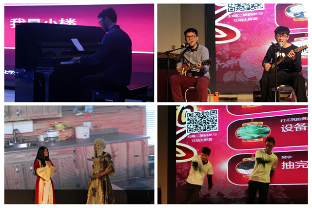 自动化“小伙伴”乐队的深情弹唱演绎出“理工男”的风雅情怀,2015级学生带来的舞台幽默剧《白雪公主》将晚会推向高潮,“飞翔吧,毽子君”更是让大家捧腹大笑。2015级学生赵国强带来的原创歌曲“Give me a chance”、研究生吕则伦和2015级学生樊瀚伟共同演唱的励志英文歌曲“You raise me up”以及2015级国际班同学带来的歌舞串烧让现场的气氛达到顶峰。