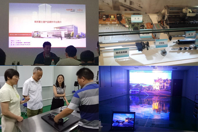 南京富士通信息科技股份有限公司工程师讲解了公司发展概况,生产规模,关键技术和主要产品。随后,学生参观了打印机生产线和公司陈列室。南京长青激光科技工程师对公司发展及产品做了深入介绍。学生们参观了企业生产的激活及投影设备,意识到尖端科技应用于生活中许多方面。