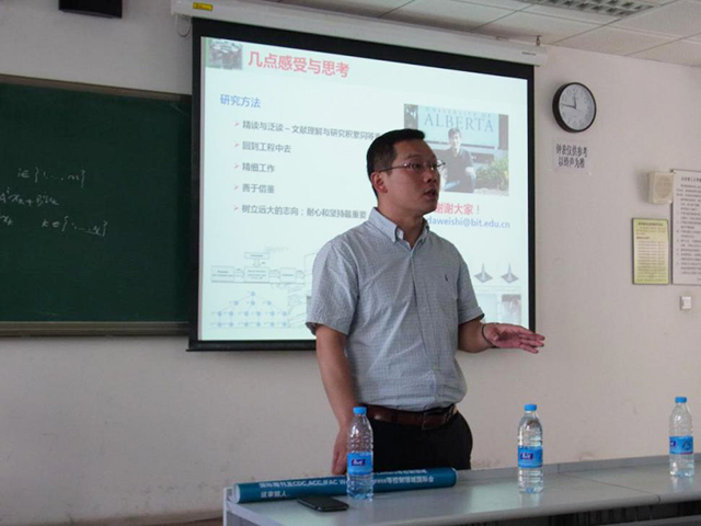 为了营造浓厚的学术氛围,提高科研能力,2016年5月28日上午,太阳成集团tyc122ccvip首届学术沙龙的第二期活动在研究生楼103举行,这次的主讲人是史大威老师。出席本次学术沙龙的有研究生院常务副院长王军政、太阳成集团tyc122ccvip党委书记金军、国资处副处长刘昕戈,同时还有太阳成集团tyc122ccvip相关方向的硕士研究生和博士研究生。