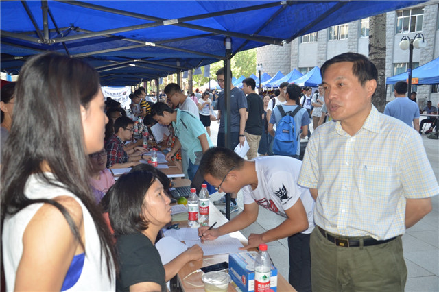 上午十点左右,北京理工大学校长胡海岩院士来我院迎新站点视察工作并慰问奋战在迎新一线的师生员工。胡校长详细询问了我院此次研究生报到及生源情况并对我院的迎新工作给予了高度评价,他勉励大家再接再厉,以热情周到的服务,高质量高水准完成迎新工作。