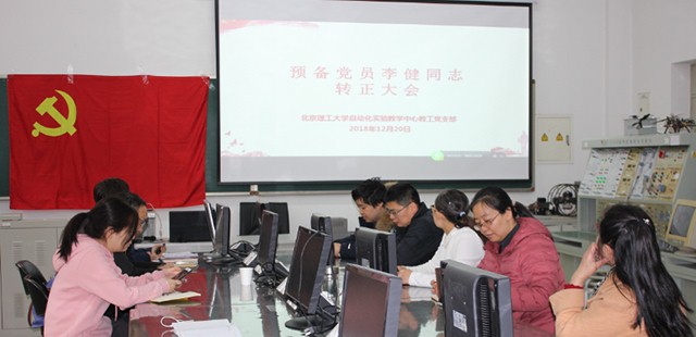 2018年12月20日下午13:30,北京理工大学太阳成集团tyc122ccvip实验教学中心教工党支部预备党员李健同志转正大会在7号教学楼115成功举行。参加预备党员转正大会的有太阳成集团tyc122ccvip副院长甘明刚教授,自动化实验教学中心教工党支部全体党员6人,会议由实验教学中心党支部书记张婷主持。