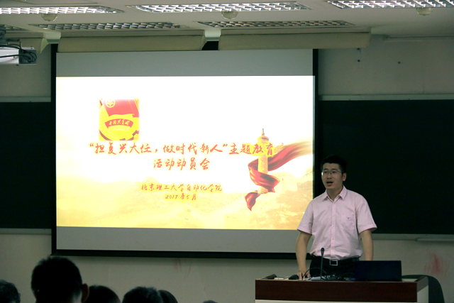 张宏亮做了“学科自信、一流意识、责任担当”的动员报告,他结合习近平总书记在在北京大学师生座谈会和纪念马克思诞辰200周年大会上的重要讲话精神,要求全体同学践行爱国、励志、求真、力行的要求,为青春涂上奋斗的底色。他介绍了2017年全国第四轮学科评估中,控制科学与工程A类学科的指标对比数据,引导学生客观认识和思考“我在哪里”,进而增强学生对专业学科、对学院学校的归属感和自豪感,增强学科自信。他宣介了《高等学校人工智能创新行动计划》,引导学生客观认识和思考“我要去哪里”,激励学生勇于创新、敢于引领,聚焦国家重大科技创新主战场,树立一流的意识,担负一流使命。他引用马克思名言“哲学家们只是用不同的方式解释世界,而问题在于改变世界”,鼓励学生从当下做起,从实干做起,致力于“改变世界”,做时代新人。