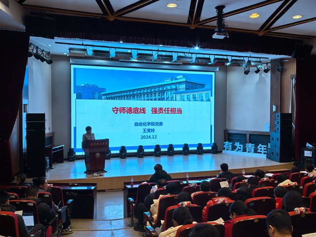 王美玲带领大家学习了习近平总书记近期重要讲话精神,结合《北京理工大学教师职业道德规范与准则》以及违反《新时代高校教师职业行为十项准则》规定典型案例,对与会教师进行了警示教育,就新闻宣传、实验室安全等相关工作进行了部署要求,并做了保密安全培训。