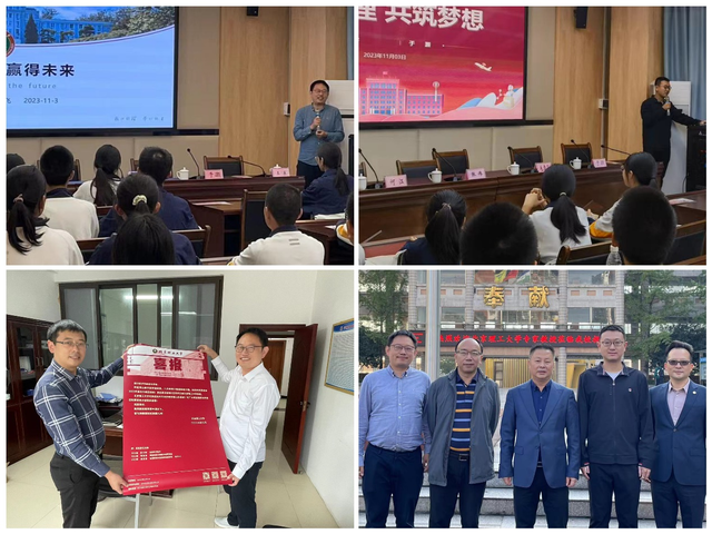 11月4日-6日,毛雪飞老师和于灏老师前往泸州二中(泸州老窖天府中学)参加该校110周年校庆,并与该校师生进行交流;他们还分别前往泸州高中,泸州天立学校、泸县二中等泸州重点高中就今年北理工的录取情况、宣讲会安排等问题进行了富有成效地交流,并向中学赠送了喜报。