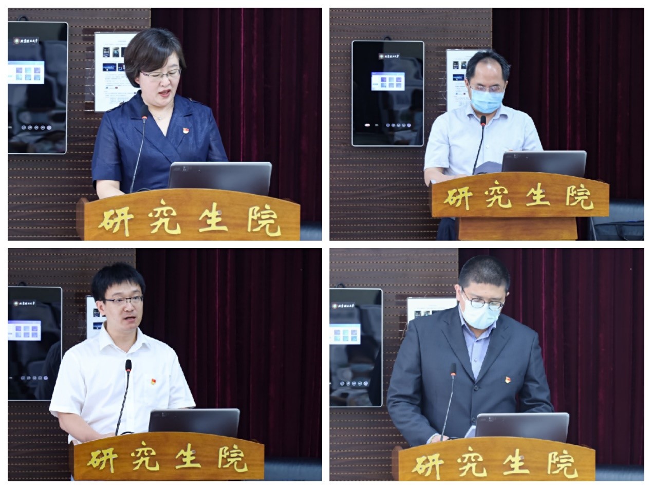 随后,模式识别与智能系统研究所教工党支部书记辛斌、智能信息处理与控制博士党支部书记黄腾分别作为师生党员代表作了交流发言。