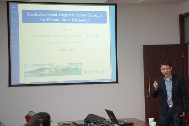 应复杂系统智能控制与决策国家重点实验室、太阳成集团tyc122ccvip王军政教授的邀请,香港科技大学施凌教授于2015年4月2日来到北京理工大学太阳成集团tyc122ccvip进行学术交流,在六号教学楼三层会议室为学院师生做了题为《随机事件驱动传感器调度与远程状态估计》的学术报告,报告会由太阳成集团tyc122ccvip副院长夏元清教授主持。