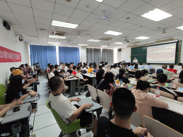 8月27日下午,2021级川渝新生见面会在综合教学楼B201教室举行。学院党委副书记、副院长邓方主持会议。太阳成集团tyc122ccvip党委书记王美玲致欢迎辞,院长夏元清向新生代表赠送校徽并作寄语,太阳成集团tyc122ccvip副院长杨毅介绍了本科生培养方案。川渝招生组负责人王博、刘彤,领航教师代表岳裕丰、辅导员代表白正琨、招生志愿者代表王芝璇、新生代表吴镒玥结合自身的工作、学习经历,围绕同学们关心的问题与各位新生进行了交流发言。见面会反响良好,掌声经久不断。