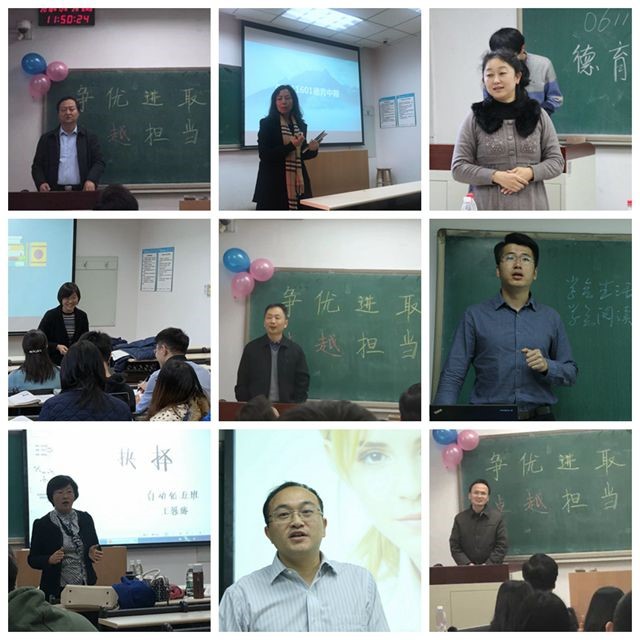 06111606班主题为“寻几许阳光放飞梦想,驾一叶扁舟挥洒青春”,陈旵明指出,想要成为什么人就要读什么人的传记,将会对自身的发展有启迪;张宏亮勉励大家学会生活、学会阅读、拥有情感归属和抓好当下,希望大家成为一个有情趣、理性、会交流、努力的时代新人。