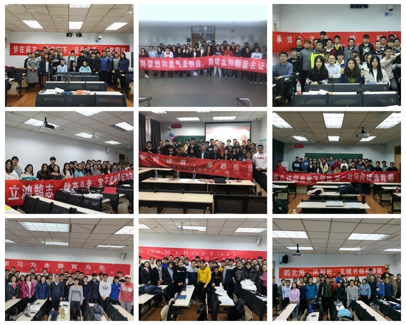 06111604班主题为“鹏北海,凤朝阳,又携书剑共扬帆”,孙健以“爱国、立志、求真、力行”鼓励同学们,面临困难要有积极的心态,奋力前行,不枉四年时光;王佳楠将生活比作一个二阶响应系统,勉励大家要让自己具有自适应控制,找到最优的控制方法融于生活,迎接挑战;戴亚平建议大家认清读研的目的,明确自身定位,发挥长处,选择合适自己的方向。