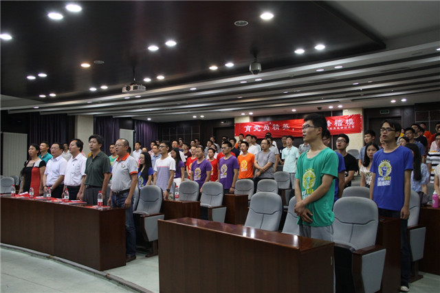 在建党九十四周年这样一个特殊的日子里,首先进行的是重温入党誓词活动。在潘峰副书记带领下,全体新老党员在鲜红的党旗下高举右手,庄重宣誓,重温自己对党忠诚的誓言,表达了为党的事业奋斗终生的决心,受到了一次心灵的洗礼和党性再教育。