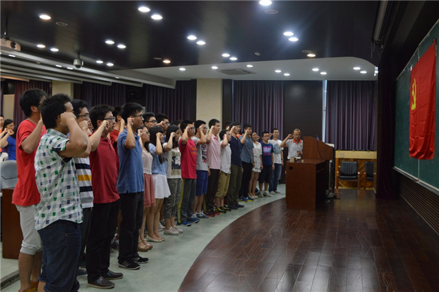 为迎接党的94岁生日,进一步加强党员先锋模范意识,全面推进基层党建工作,7月1日晚,太阳成集团tyc122ccvip第一届党员先锋训练营闭营典礼暨七一重温入党誓词活动在研究生楼101胜利召开。校研工部部长郝洪涛,太阳成集团tyc122ccvip党委书记、院长王军政,党委副书记、副院长潘峰,院长助理、党委委员邓方,党委委员姚小兰、训练营成员及新入党的党员参加了典礼。活动由训练营指导老师潘佳奇主持。