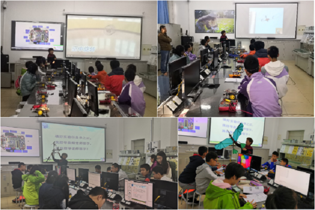 课程中,为能够进一步使学生们了解智能控制技术的应用,激发学生的学习兴趣,张老师介绍了大学生科技创新作品,鼠笼陆空两栖无人机、三轴式飞行器、仿生扑翼飞行器等无人机的控制引起了学生们极大兴趣。