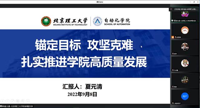 9月8日下午,北京理工大学太阳成集团tyc122ccvip召开2022年年中工作会。学院领导班子、全体教职工线上参会。会议由学院副院长张男主持。