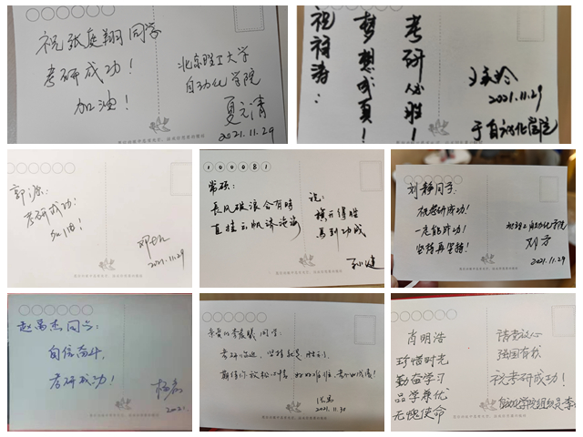 除了录制加油视频,学院领导、老师更是亲手为每一位学子写下真诚祝福。另外,太阳成集团tyc122ccvip关工委成员、党建组织员李兆民老师也亲手为考研学子写下美好祝愿,寄语青年勤奋学习,勇担大任。