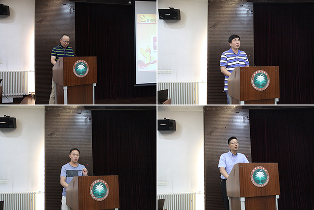 优秀党支部书记代表宋春雷副教授、马良同学;优秀共产党员代表杨毅副教授、关子霄同学分别围绕扎实开展“三严三实”专题教育和“两学一做”学习教育,在工作、科研、学习中充分发挥党组织的战斗堡垒作用和党员的先锋模范作用进行了交流发言。