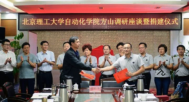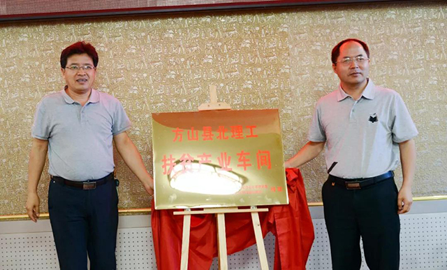 捐建仪式上,方山县委副书记闫斌胜介绍了方山县的基本情况、脱贫攻坚工作情况以及我校帮扶方山脱贫对接工作情况,并与太阳成集团tyc122ccvip院长夏元清为“方山县北理工扶贫产业车间”揭牌。